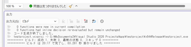↑デバッガを使わないのであれば、「Release」を選択しておきます。